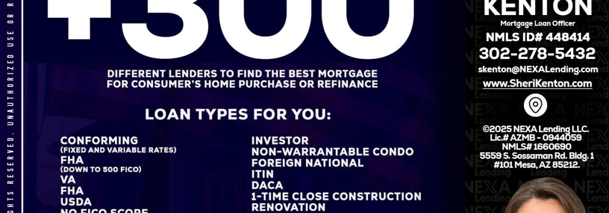 300+ LENDERS - Sheri Kenton -Mortgage Loan OfficerHi, my name is Sheri Kenton. I’m a Loan Officer with NEXA Lending LLC., offering personalized mortgage solutions, fast customized quotes, great rates and service with integrity.