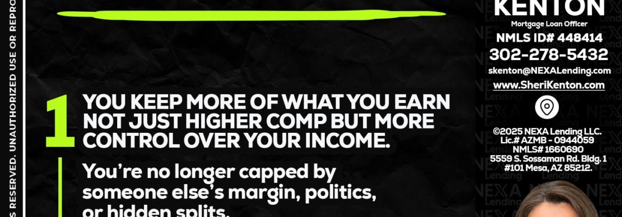 7 THINGS (1) - Sheri Kenton -Mortgage Loan OfficerHi, my name is Sheri Kenton. I’m a Loan Officer with NEXA Lending LLC., offering personalized mortgage solutions, fast customized quotes, great rates and service with integrity.