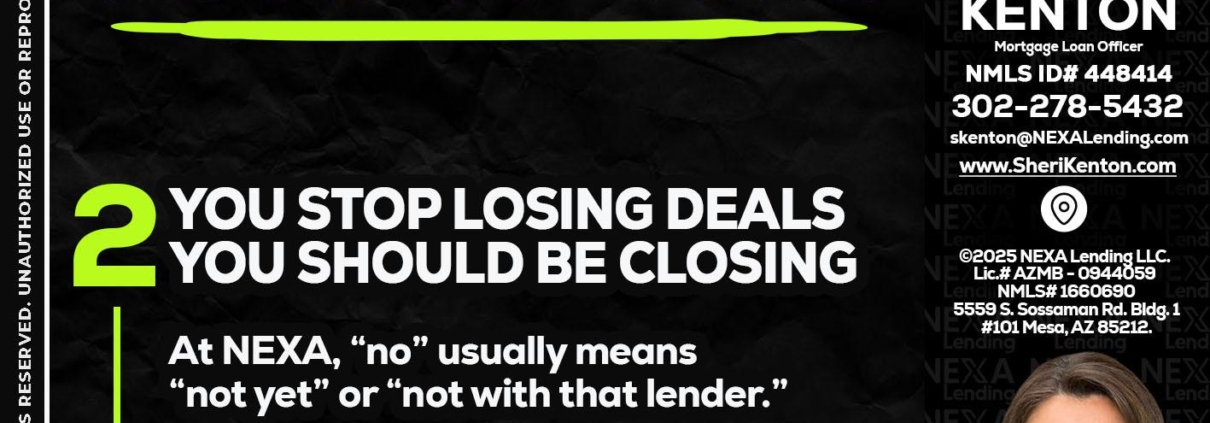 Hi, my name is Sheri Kenton. I’m a Loan Officer with NEXA Lending LLC., offering personalized mortgage solutions, fast customized quotes, great rates and service with integrity.
