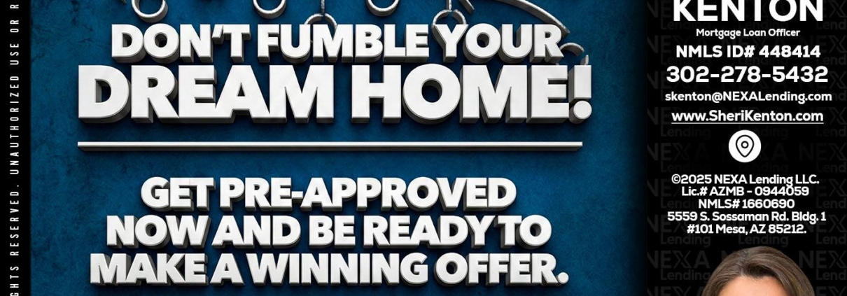 dont fumble - Sheri Kenton -Mortgage Loan OfficerHi, my name is Sheri Kenton. I’m a Loan Officer with NEXA Lending LLC., offering personalized mortgage solutions, fast customized quotes, great rates and service with integrity.