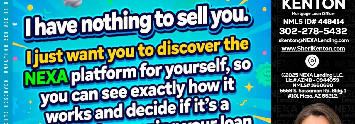 Hi, my name is Sheri Kenton. I’m a Loan Officer with NEXA Lending LLC., offering personalized mortgage solutions, fast customized quotes, great rates and service with integrity.