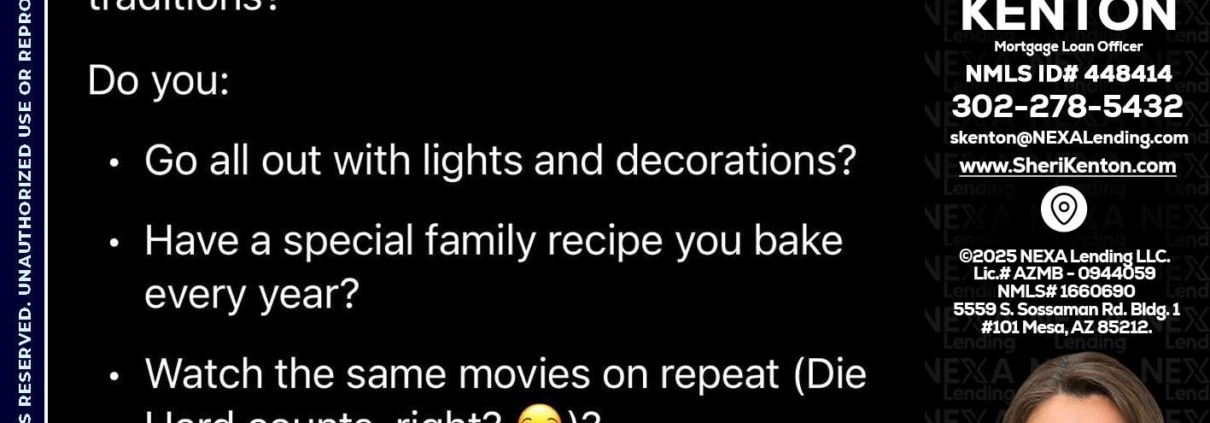 Hi, my name is Sheri Kenton. I’m a Loan Officer with NEXA Lending LLC., offering personalized mortgage solutions, fast customized quotes, great rates and service with integrity.