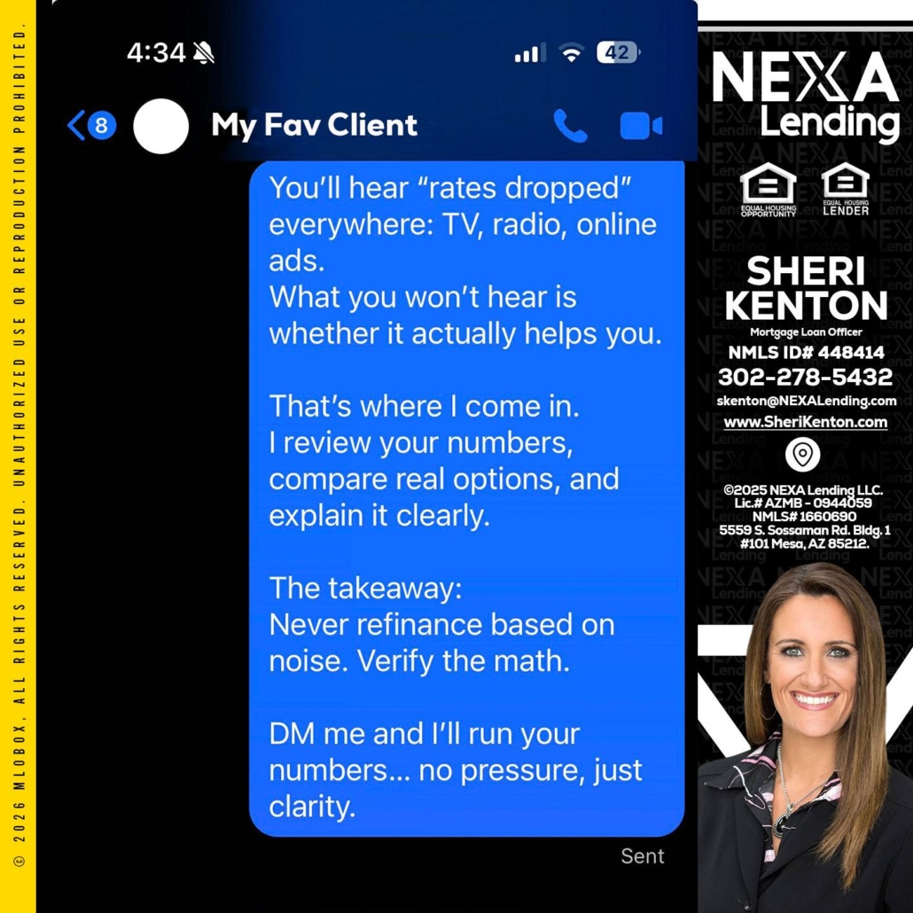 Hi, my name is Sheri Kenton. I’m a Loan Officer with NEXA Lending LLC., offering personalized mortgage solutions, fast customized quotes, great rates and service with integrity.