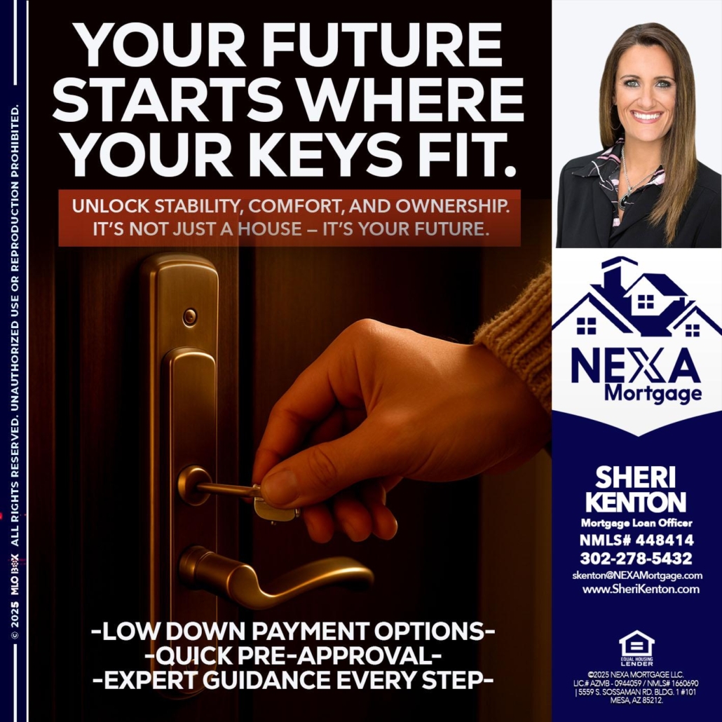 Hi, my name is Sheri Kenton. I’m a Loan Officer with NEXA Mortgage LLC., offering personalized mortgage solutions, fast customized quotes, great rates and service with integrity.